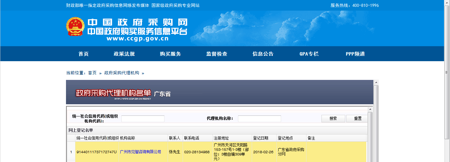 政府采購代理機(jī)構(gòu)名單查詢鏈接:http://www.ccgp.gov.cn/agency/main.htm