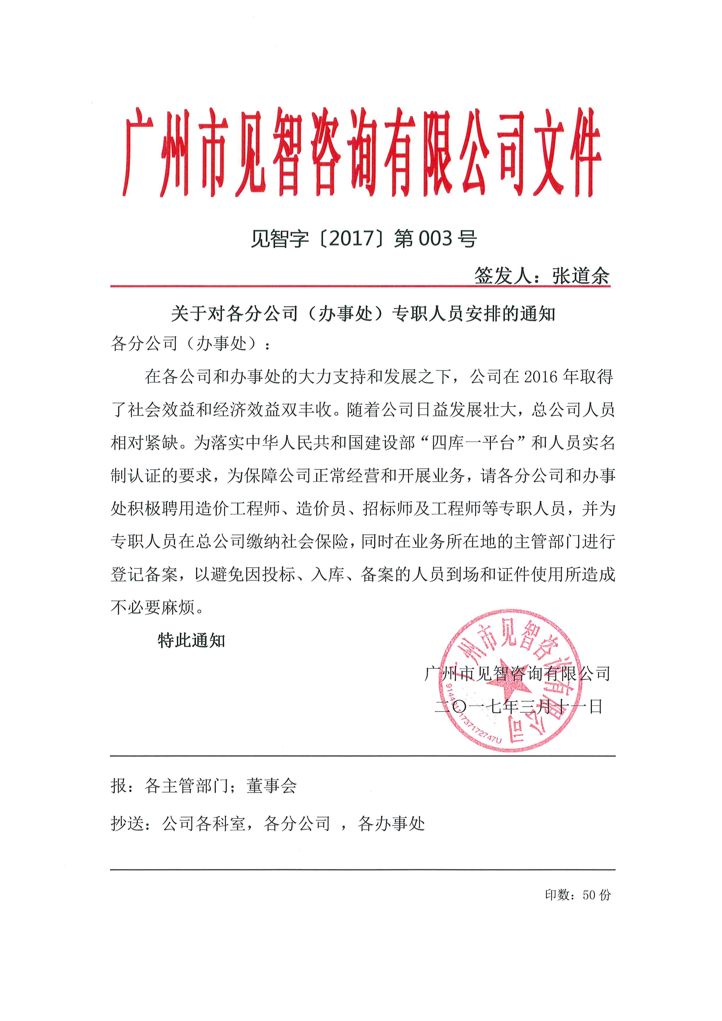 關(guān)于對(duì)各分公司(辦事處)專職人員安排的通知